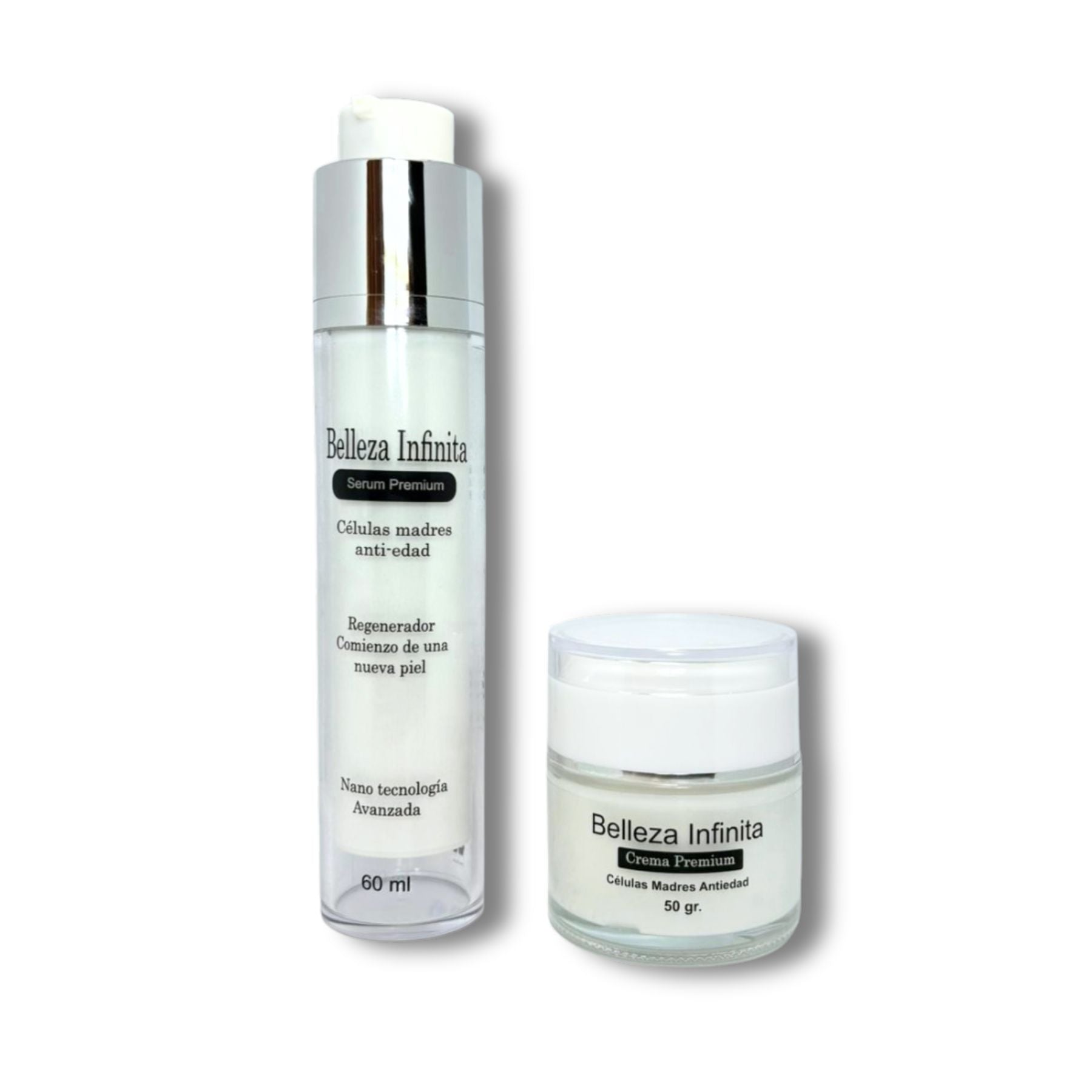 Al usar nuestro Serum Belleza Infinita cada mañana, no solo obtienes frescura y suavidad, sino que también preparas tu piel perfectamente, actuando como un primer ideal para el maquillaje. Por la noche, la Crema Belleza Infinita, a base de células madre, trabaja intensamente para reparar la barrera cutánea y combatir el fotodaño acumulado durante el día.